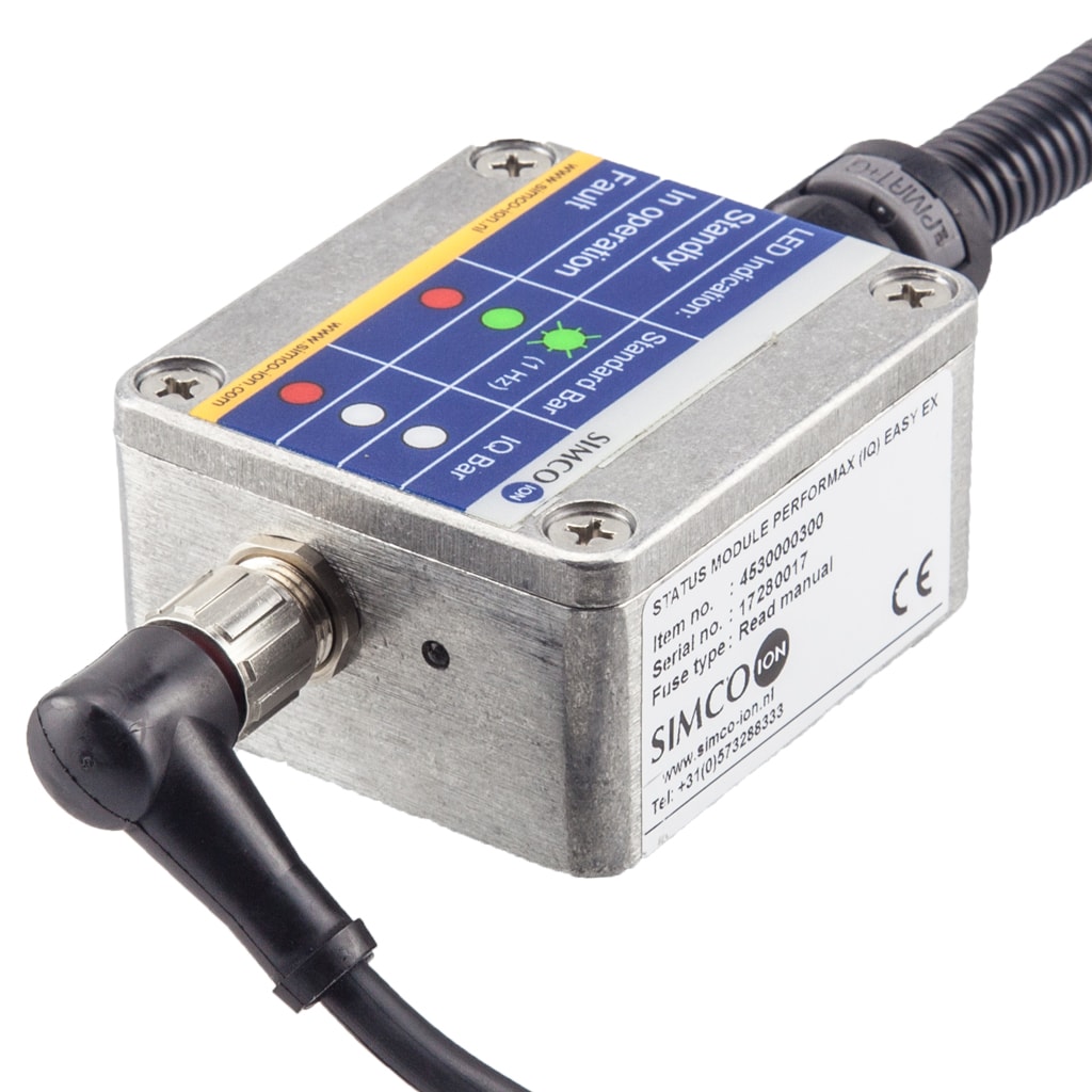 Dispositivo neutralizador de la electricidad estática, compacto y de alta eficacia, para ambientes con riesgo de explosión. The Performax IQ Easy Ex has an integrated high voltage power supply and requires only a low voltage input of 24V DC. A two color high bright LED visualises bar ON (green) or bar FAULT (red). La barra Performax IQ Easy Ex tiene los extremos ligeramente doblados y cumple con la categoría de protección IP66, lo que facilita la limpieza. El perfil de aluminio ofrece una estructura muy robusta de hasta 3 metros. Universal mounting brackets are supplied for various mounting options.